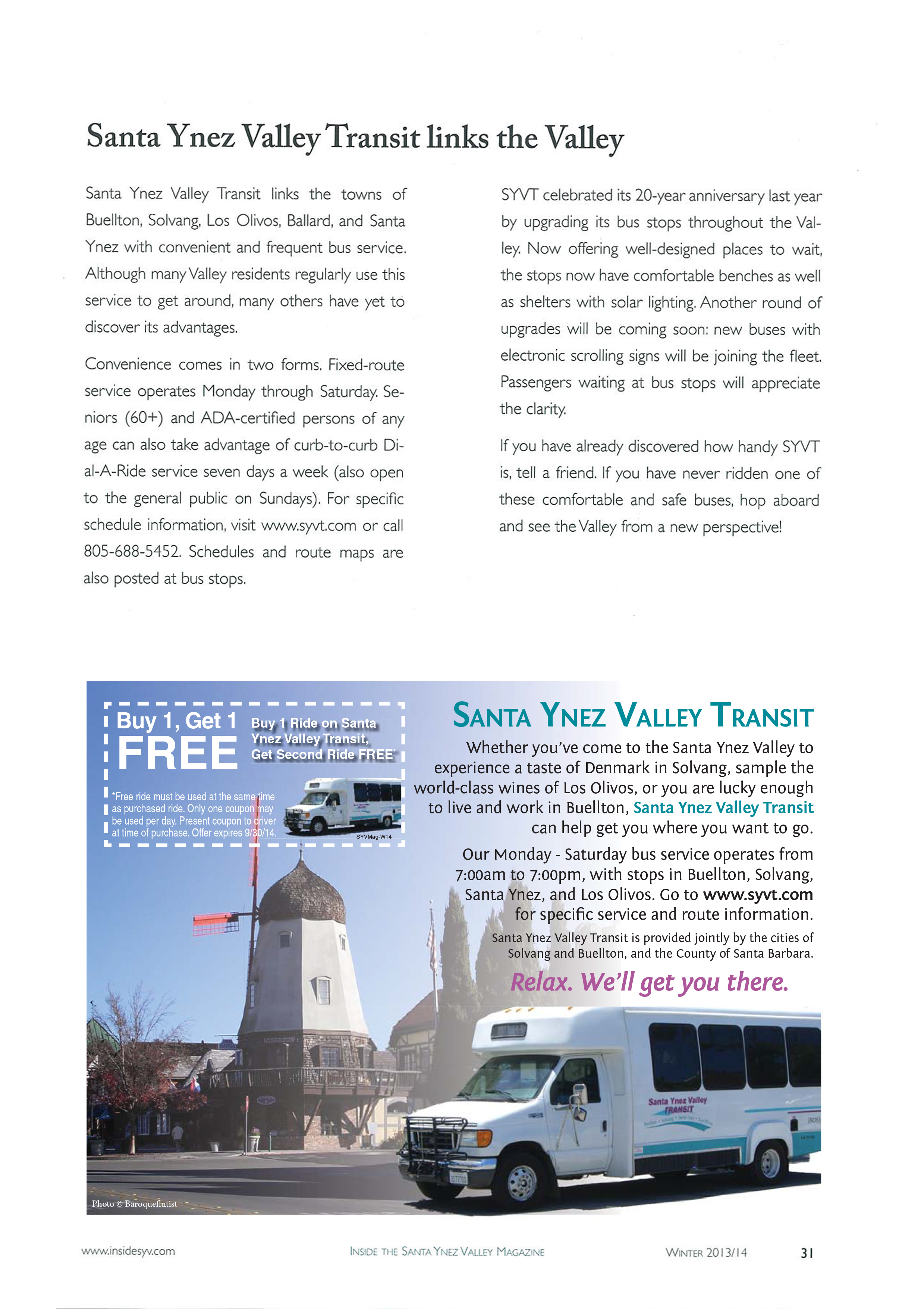 Read the seasonal Santa Ynez Valley Transits News Letter and "enjoy the ride".